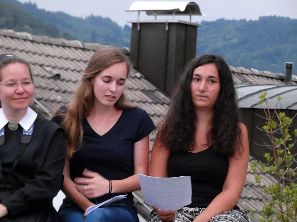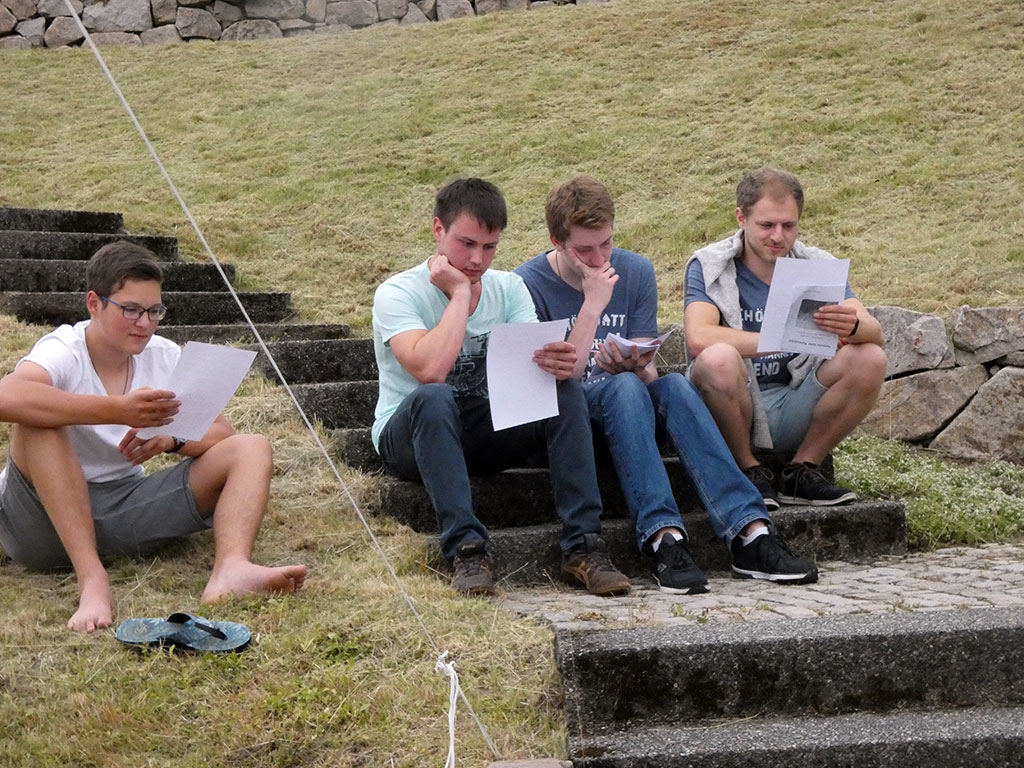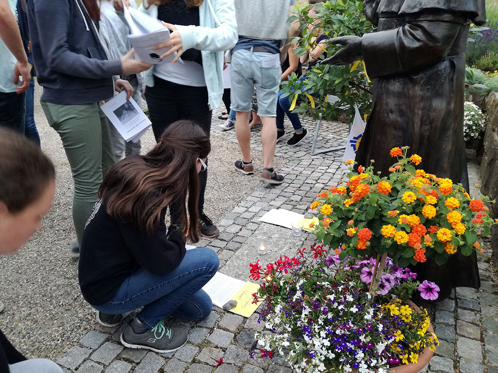 Im nächsten Teil haben die Jugendlichen – in direktem Kontakt, bei der Kentenich-Statue – die Möglichkeit gehabt zu hören, wie und was Kentenich zu sagen hat. Zu Beginn hat Kentenich, anhand einer Originalaufnahme aus dem Jahr 1967, eine Geschichte erzählt: „Und heult der Sturm und tobt der Wind und kracht der Blitze Feuer. Ich denke wie des Schiffers Kind: Der Vater sitzt am Steuer“.