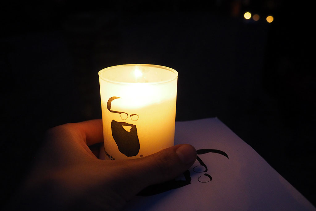 Nach der Stärkung folgte der Höhepunkt der Veranstaltung. Die Vigilfeier. Im ersten Teil gab es die Möglichkeit Pater Kentenich nochmal neu kennen zu lernen. Was war das für ein Mensch? Wie sah er aus? Was hat er gemacht und wieso ist er so besonders? Anhand eines Liedes haben alle Teilnehmer noch das ein oder andere neue über Pater Joseph Kentenich erfahren können. Zum Beispiel hatte dieser den langen Bart vor allem, um seine Stimmbänder zu schonen und warm zu halten.