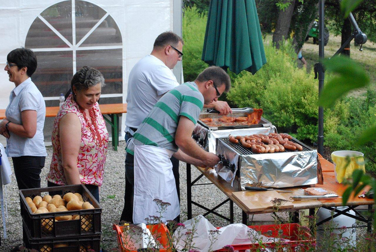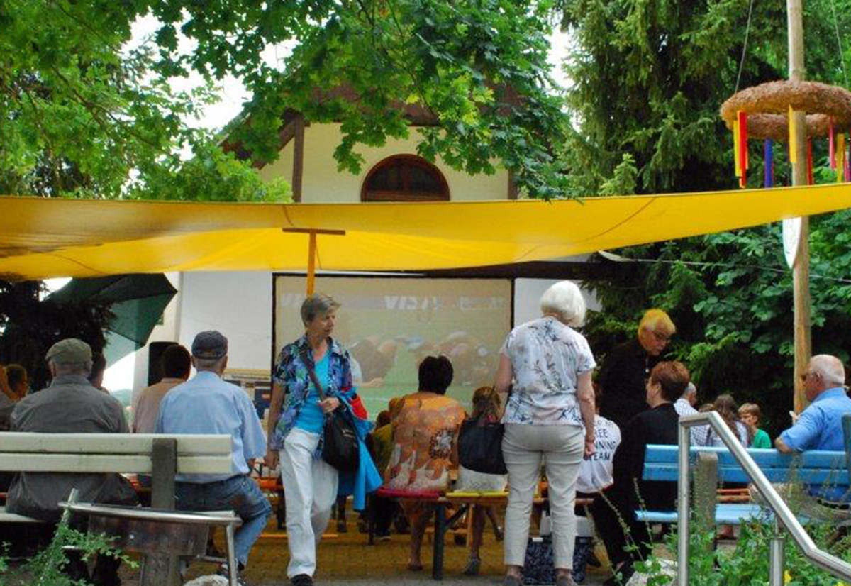Das Wetter war eigentlich optimal, denn der Regen ging in der Umgebung runter und das Fest war lediglich mit einigen Tropfen betroffen. Clou beim Fest war, dass Punkt 17 Uhr mit dem Ende der Schlussandacht die Übertragung des Fußballspieles Deutschland gegen Mexiko auf einer großen Leinwand zu erleben war! Aus deutscher Sicht hat leider die falsche Mannschaft gewonnen.