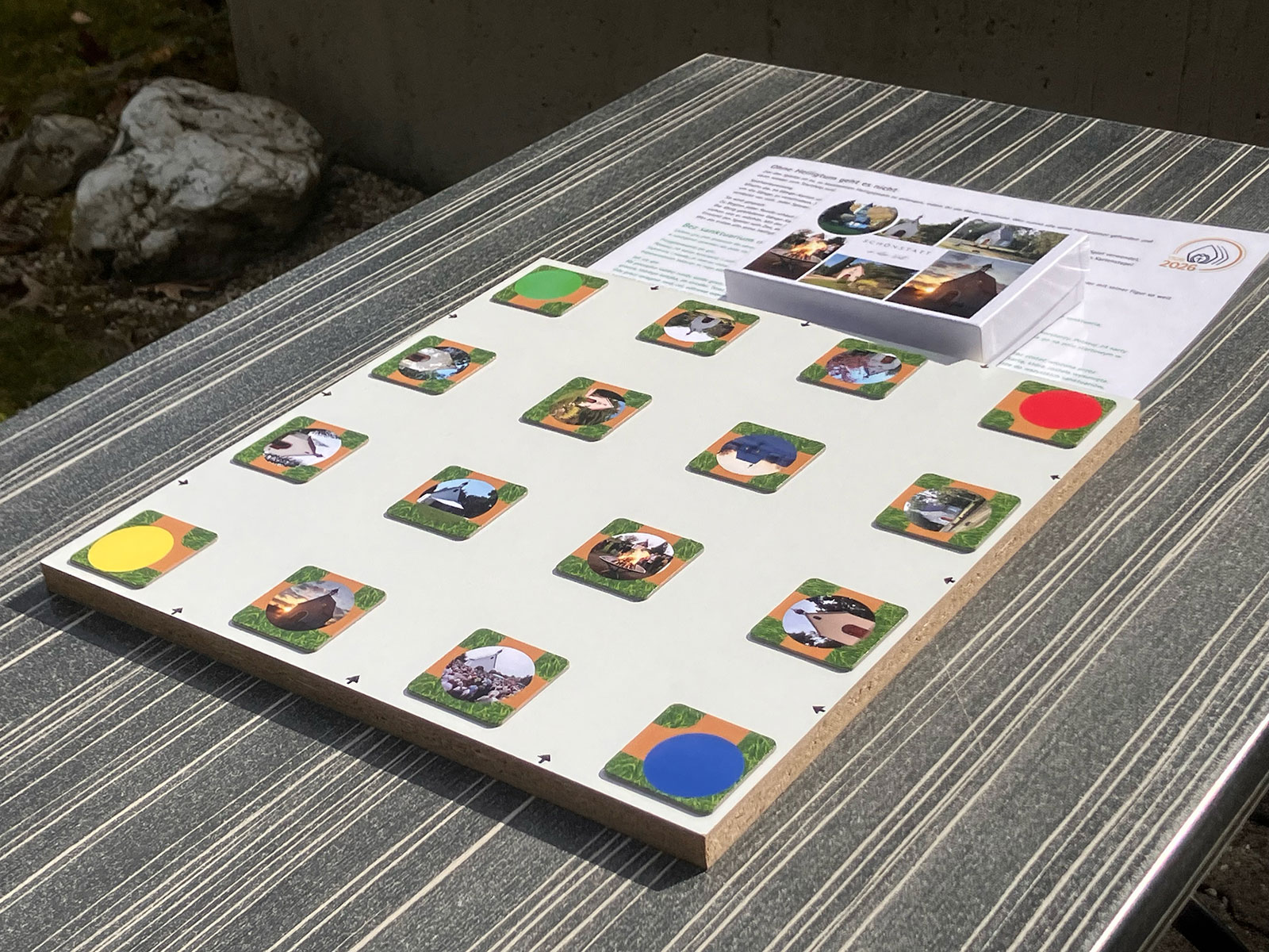 Für die kleinen Besucher – und nicht nur für sie – findet sich auf der Wiese vor dem Mutterhaus ein Erlebnisparcour, auf dem in spielerischer Weise Begegnung mit dem Leben der Gemeinschaft möglich ist.