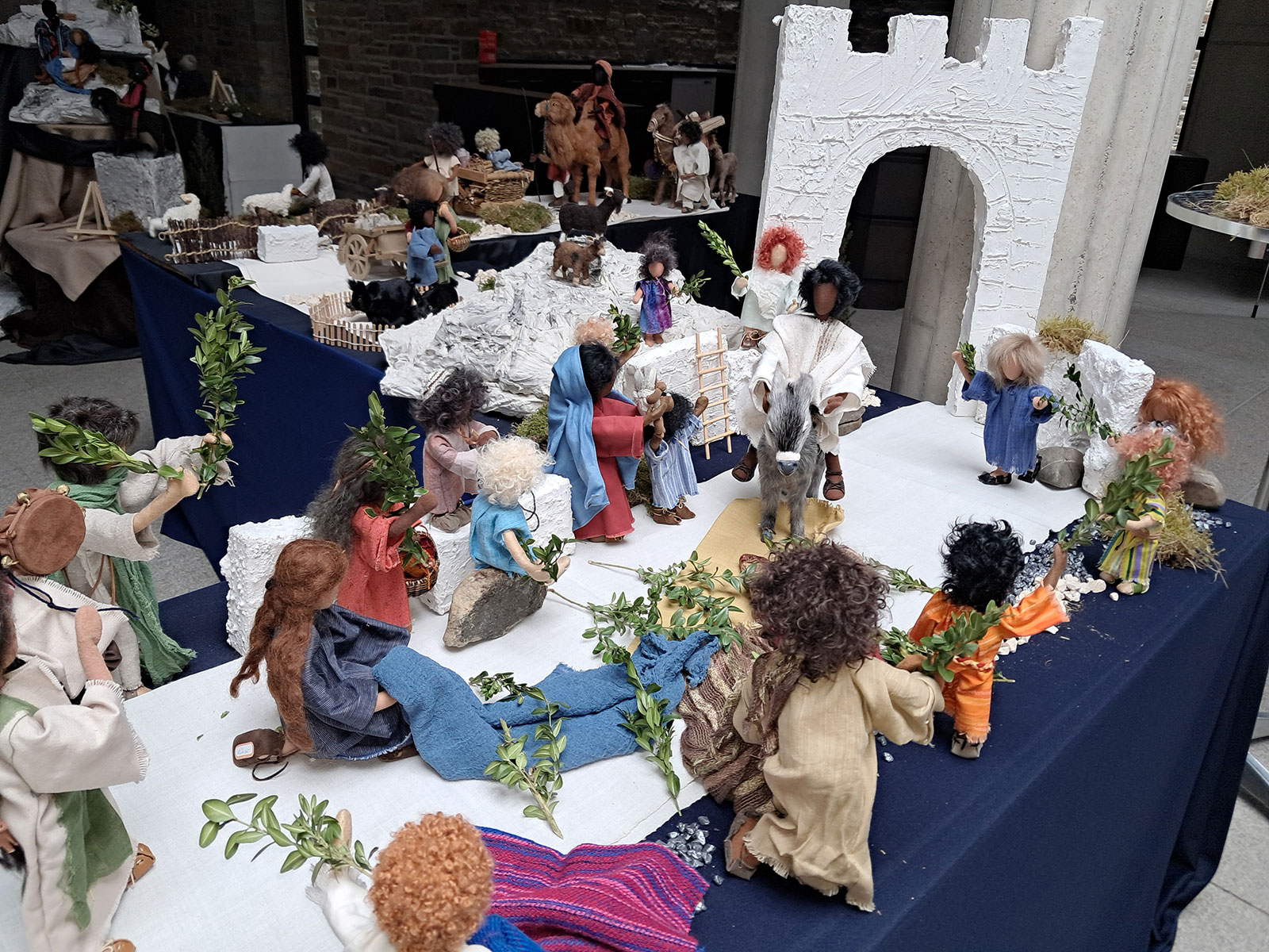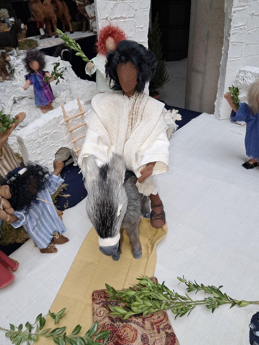 Im Foyer des Pater-Kentenich-Hauses waren viele biblische Szenen der Kar- und Ostertage mit "Egli"-Figuren nachgestellt. Im Bild: Jesu auf einem Esel reitend bei seinem Einzug in Jerusalem (Foto: Schw. Gisela-Maria Mues)