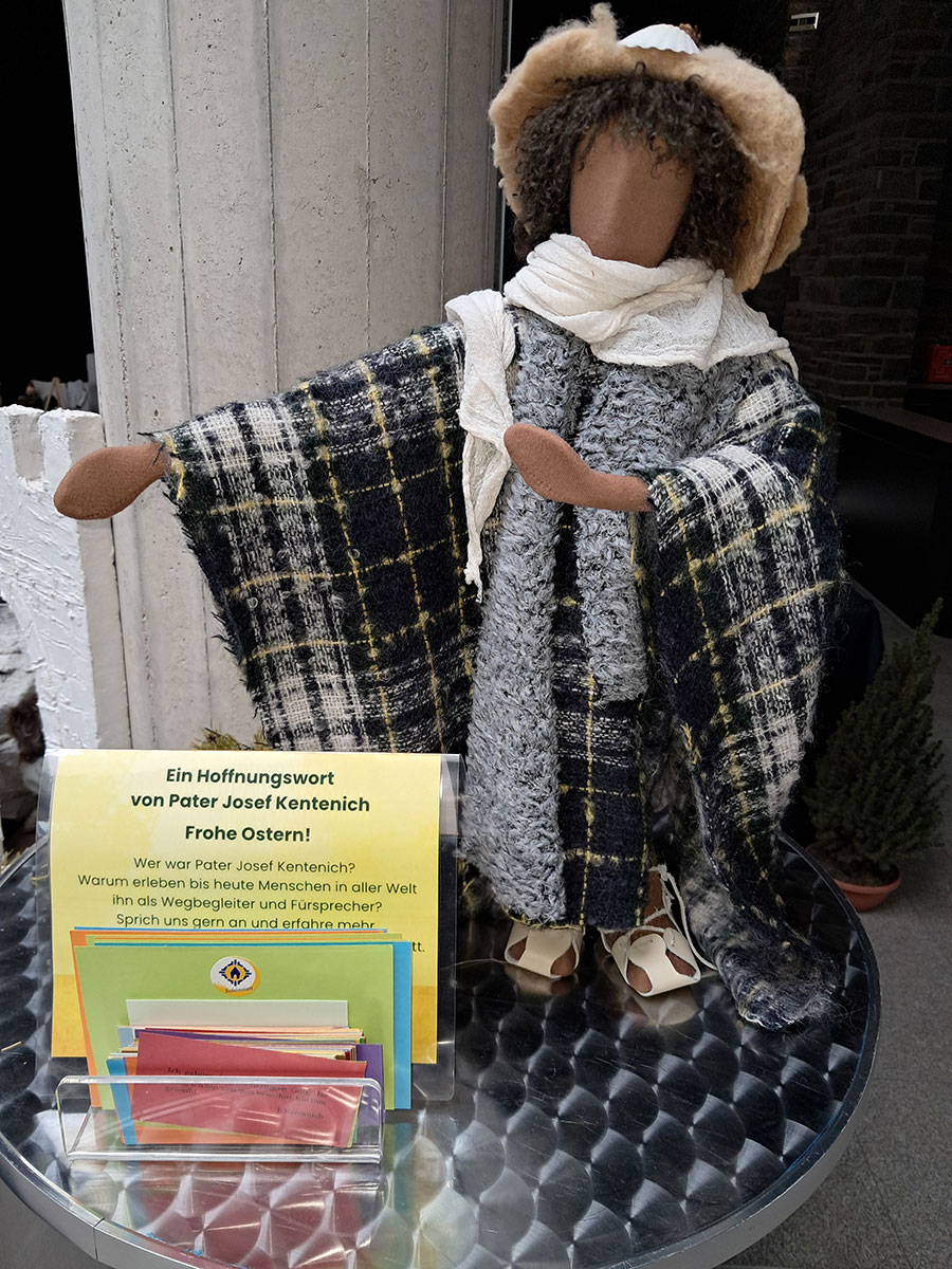 Schwester Gisela-Maria Mues, Leiterin des Pater-Kentenich-Hauses auf Berg Schönstatt, freut sich, dass in den zwei Wochen rund um Ostern das Haus, das als Ausstellungsgebäude in erster Linie dem Leben des Schönstattgründers Pater Josef Kentenich gewidmet ist, zahlreiche Besucher empfangen konnte. „Besonders junge Familien mit Kindern nutzen das Angebot, in der Eingangshalle die mit „Egli-Figuren“ gestellten biblischen Szenen des Ostergeschehens, zu betrachten.“